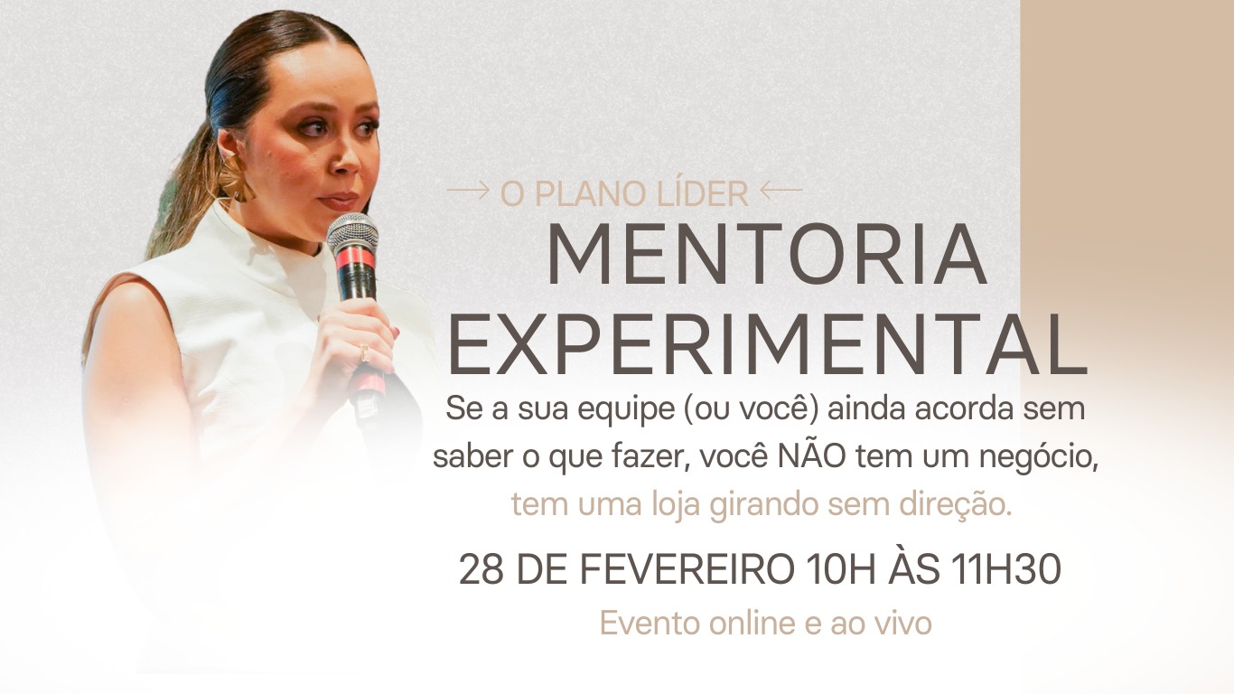 Descubra o sistema tático de execução que transforma lojistas exaustas em líderes com rotina, margem e direção. Em um dia inteiro, você monta um plano com metas de lucro, tarefas claras e equipe alinhada.